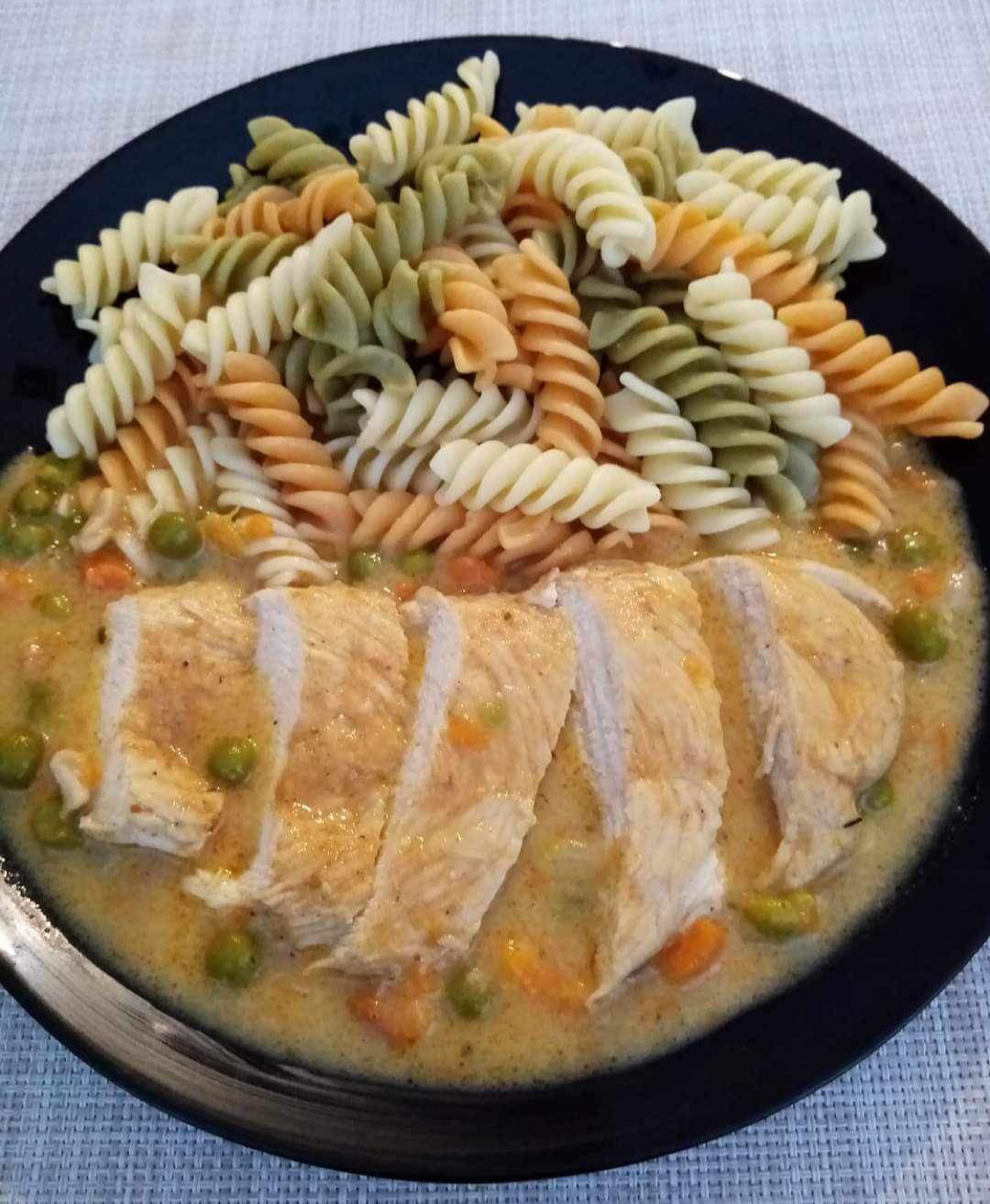 Kuracie prsia v smotanovej omáčke s cestovinou.