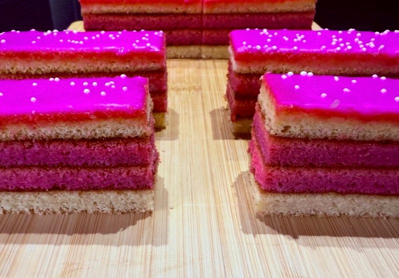 Ružové piškótové cesto