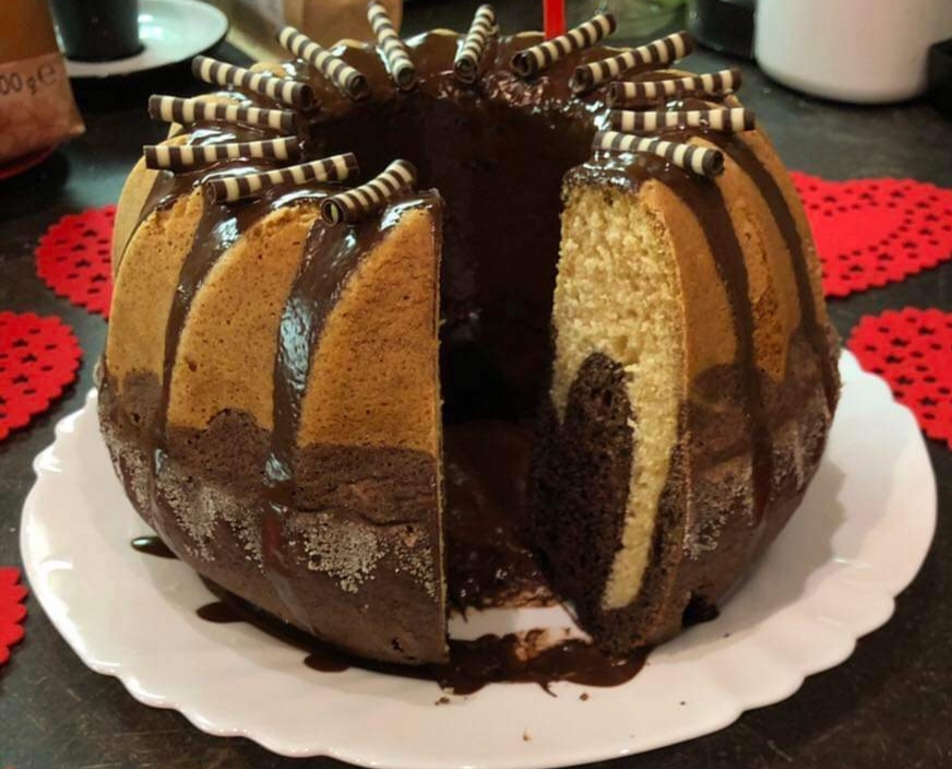 Dvojfarebná bábovka s čokoládovou príchuťou, ideálna na Valentína.