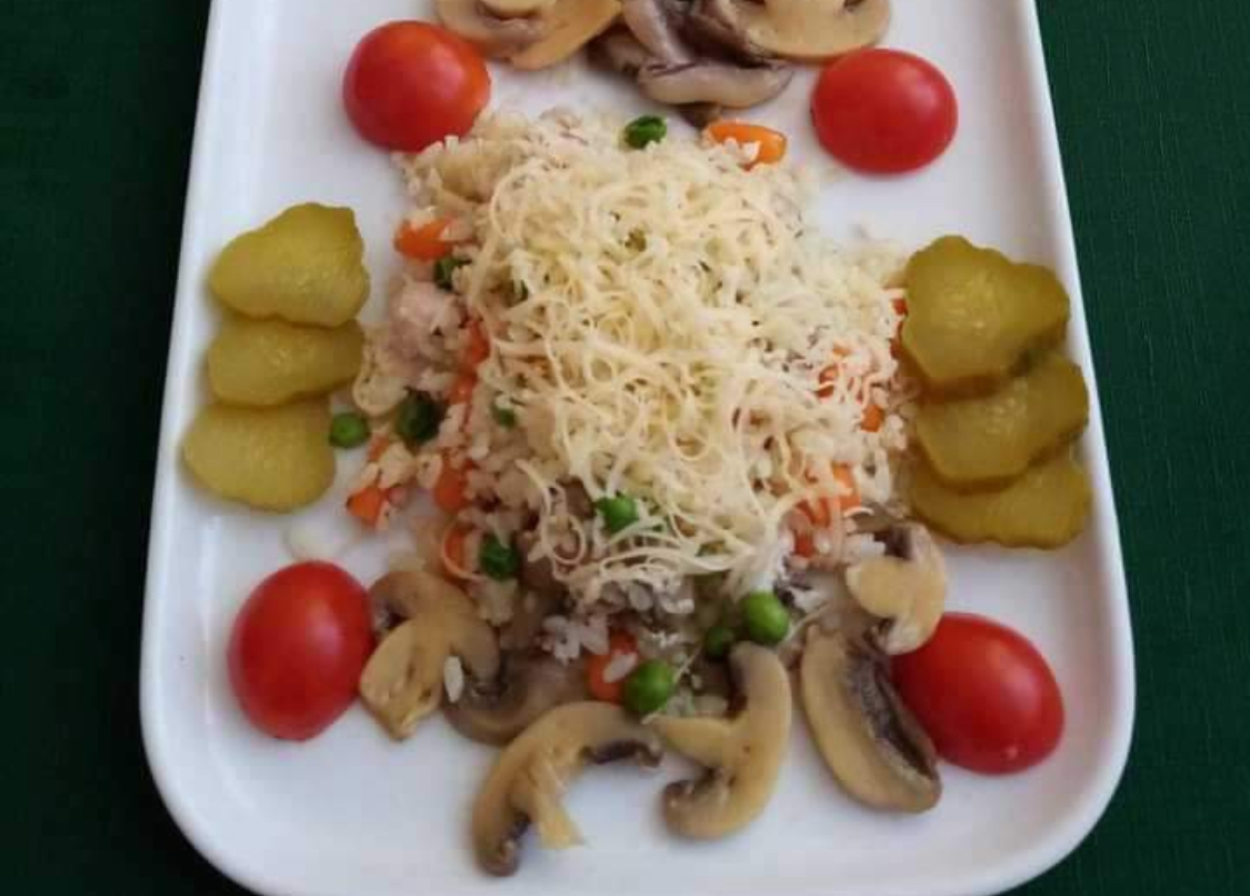 Chutné rizoto s kuracím mäsom a zeleninou.